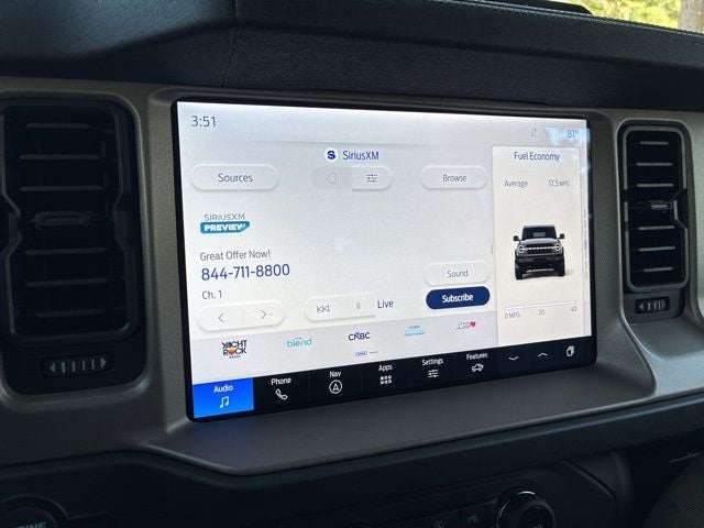 The Bronco Outer Banks is more than just a capable off-road machine - it's a well-appointed SUV that keeps you connected, comfortable, and in command. With an EPA-estimated 19 city / 21 highway MPG, this Bronco balances power and efficiency to handle your daily drives and weekend adventures.
